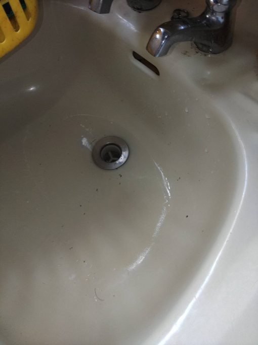 調査をして水を流すと溜まってしまう状態という事と、外の排水桝も確認し、洗面台で詰まっていることが分かりました。