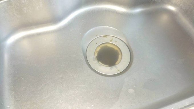 水が流れ切らずに排水口に水が溜まっています。