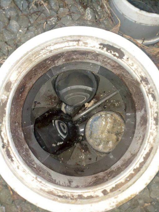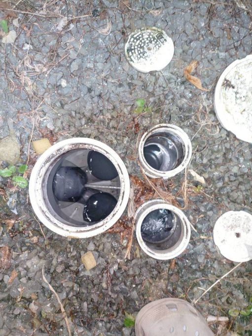 屋外にある排水マスをみる見るとギッシリ油が詰まっていましたので今回は高圧洗浄による油詰まり除去を行ないます。