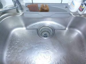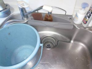 築15年使用のお家のこちらの台所でバケツで一気に流すと溜まってしまい流れていきません。