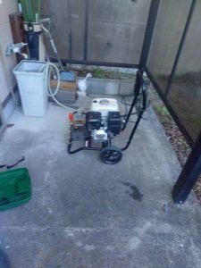 こちらの高圧洗浄機を使って水圧で配管の内側にある油を砕いて流していきます。年数が経っていると油がかなり硬くなり取り切るのに時間がかかます。