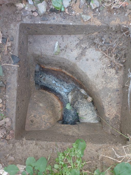 一度流してみましたが流れません。マスの確認でふたを開けるとかなり詰まっている状態でしたので、高圧洗浄を提案致しました。