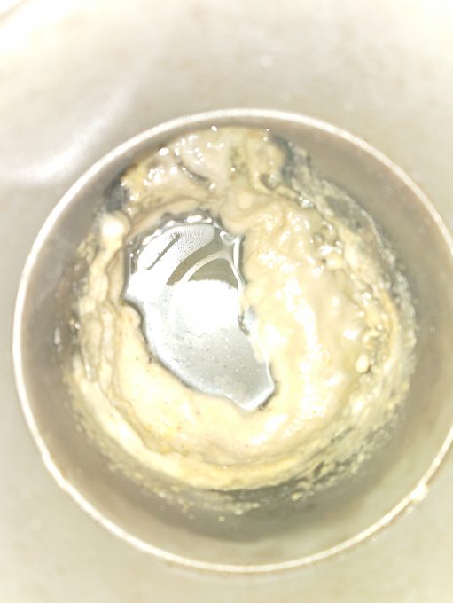 台所下の蛇腹ホースは経年劣化により硬化しており、内部には汚れの付着も確認できました。状況を踏まえ、高圧洗浄と薬剤洗浄を行うことになりました。