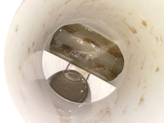 1か月前から排水の流れが悪いとのご相談をいただきました。建物は築40年ほどで、これまで排水管の洗浄は行われていない状態でした。