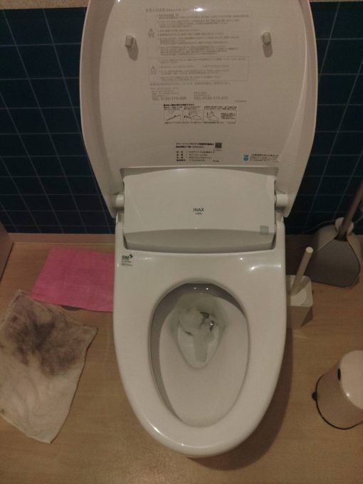 お客様にお話をお伺いすると、トイレットペーパーの流しすぎによる詰まりとの事でした。タンクレストイレですので、水量が少なくトイレットペーパーを多く流してしまうと詰まってしまいます。