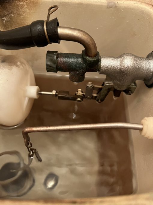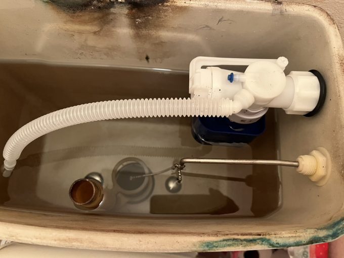 調べてみるとタンク内の浮き球(ボールタップ)と排水の止水球(排水弁)が劣化していました。