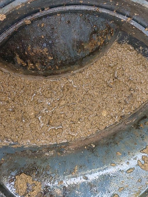 マスの中にはかなりの油汚れがあり、高圧洗浄と薬剤洗浄を行う事になりました。
