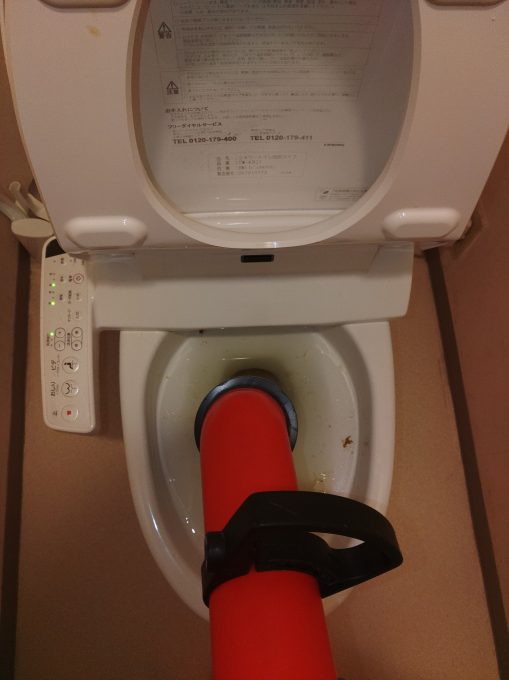 夫婦2人暮らしで、トイレを1度変えており使用は2年でした。トイレペーパーを大量に使いつまらせてしまったとのことでした。