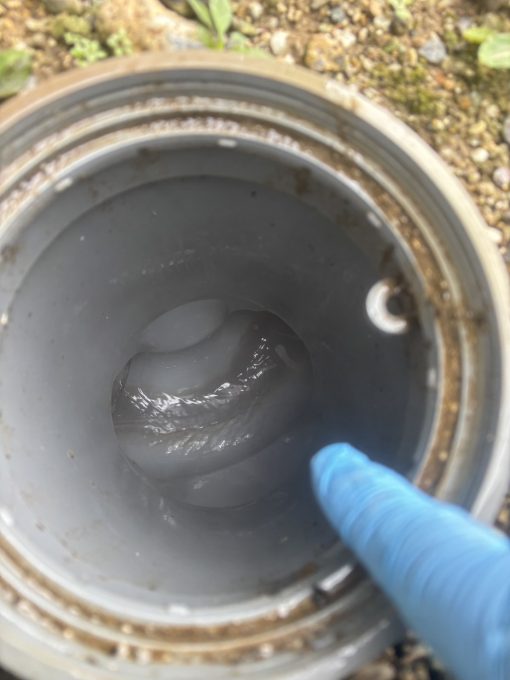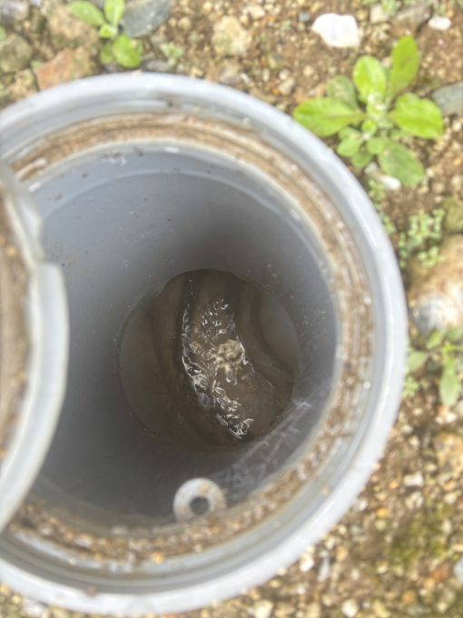 ゴボゴボと異音もしていますので、お客様に排水の息継ぎの説明をし、詰まっている排水枡も見て頂きました。