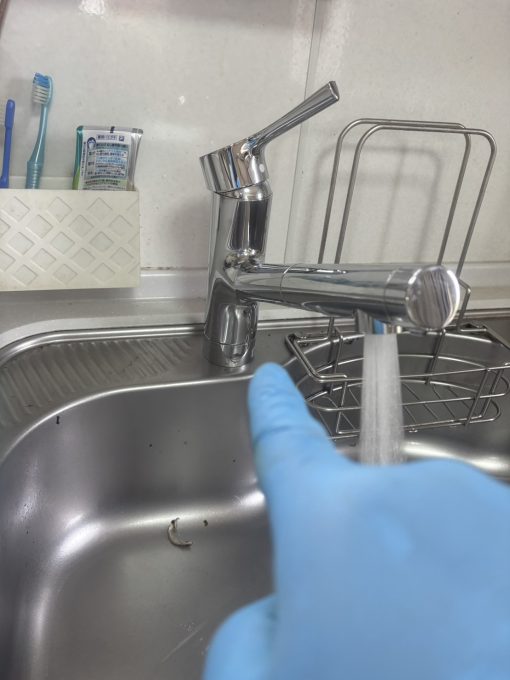 既存の蛇口を取り外しましたら、新しい蛇口を取り付て通水確認をし完了となりました。