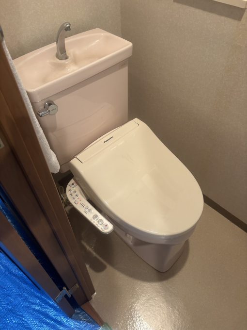 古いトイレを取外し、新しいトイレの取り付けを行いました。