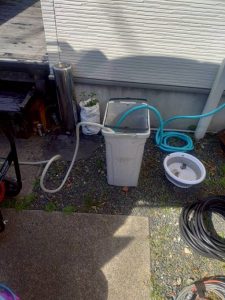 築10年程の戸建て住宅で台所のお水を流すと排水されずシンクに溜まってしまいます。お客様にお話を聞くと数ヶ月前から水の流れが悪くなっていたようで市販の配管洗浄剤やホームセンターで売っているワイヤーを使っていたようですが今回改善されずご依頼いただきました。屋外の排水マスを覗くと油がギッシリ詰まっていました。
