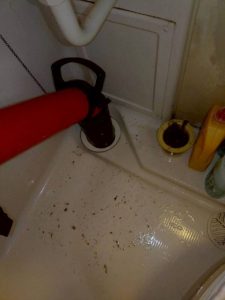 本日のご依頼は浴室の洗い場の水が流れなくなってしまったので見てほしいとの事で早速確認させていただくと…
