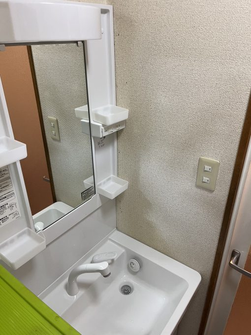 古い洗面化粧台を撤去して新しい洗面化粧…